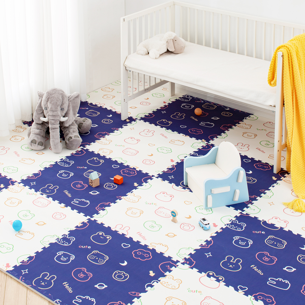 Our Foam Crawling Mat, 60*60*1.4cm per piece, set of four, made of non-toxic EVA foam. Soft, durable, and easy to clean, perfect for safe play.